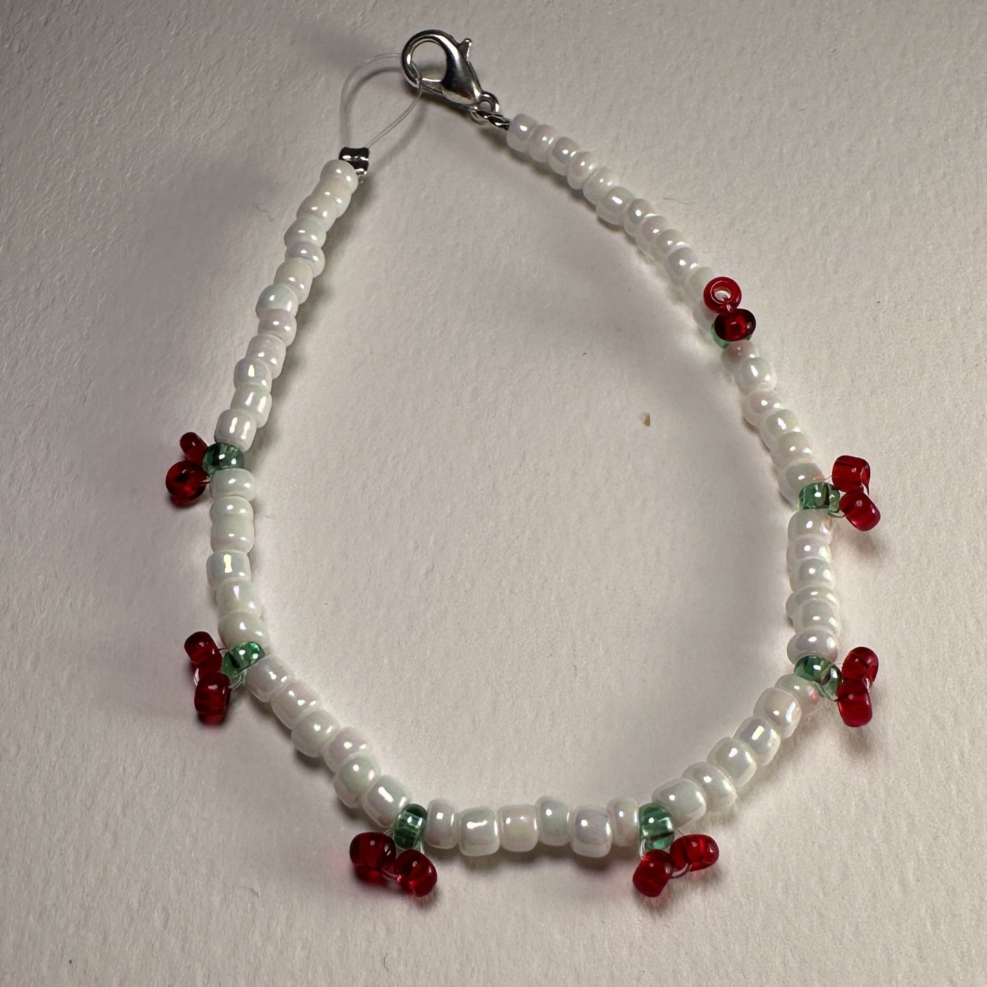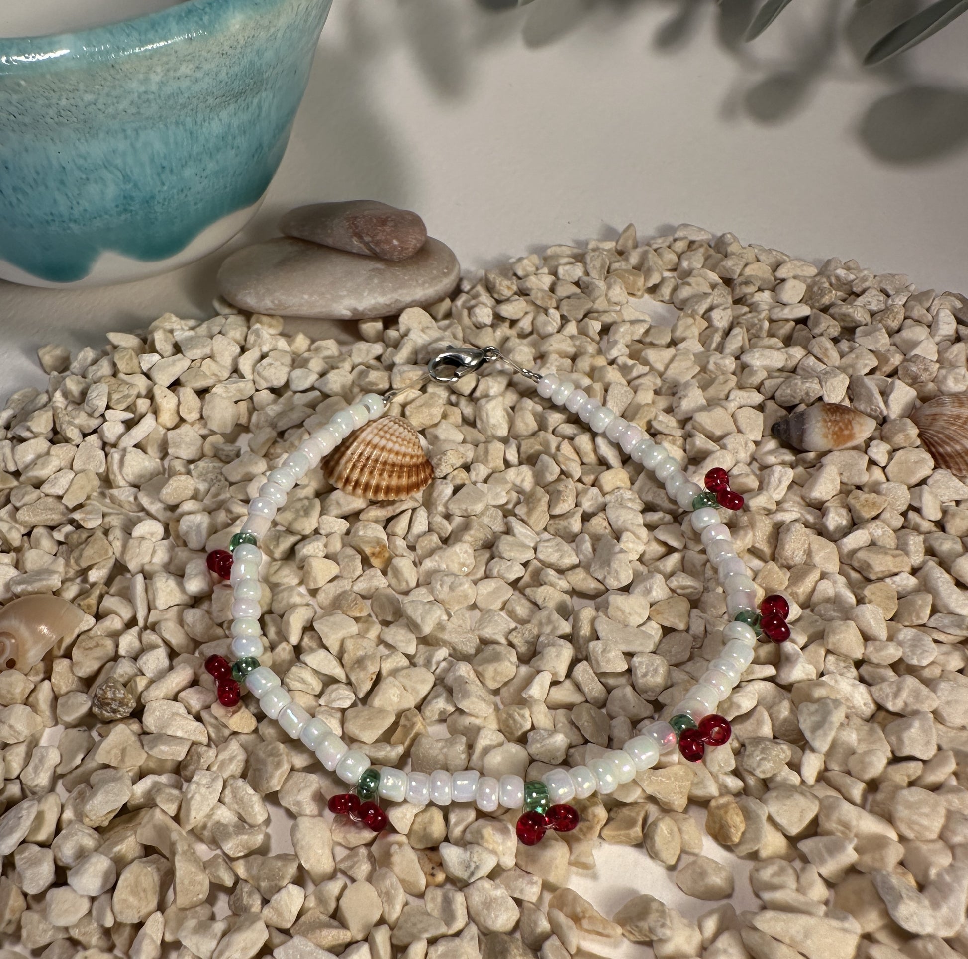 Προσθέστε μια πινελιά παιχνιδιάρικης γοητείας στην εμφάνισή σας με το βραχιόλι «Cherry»! Αυτό το χειροποίητο βραχιόλι, διαθέτει λεπτές λευκές χάντρες διακοσμημένες με αξιολάτρευτες πινελιές κόκκινου κερασιού, ιδανικές για να δώσουν στο ντύσιμό σας μια κοριτσίστικη και φρέσκια γοητεία. Ελαφρύ και άνετο, το βραχιόλι "Cherry" είναι σχεδιασμένο για χρήση όλη μέρα, καθιστώντας το ιδανική προσθήκη στη συλλογή κοσμημάτων σας. Αγκαλιάστε ένα νεανικό και γλυκό στυλ με το βραχιόλι "Cherry", το αγαπημένο σας κομμάτι για να προσθέσετε μια διασκεδαστική και θηλυκή πινελιά σε κάθε σύνολο.
