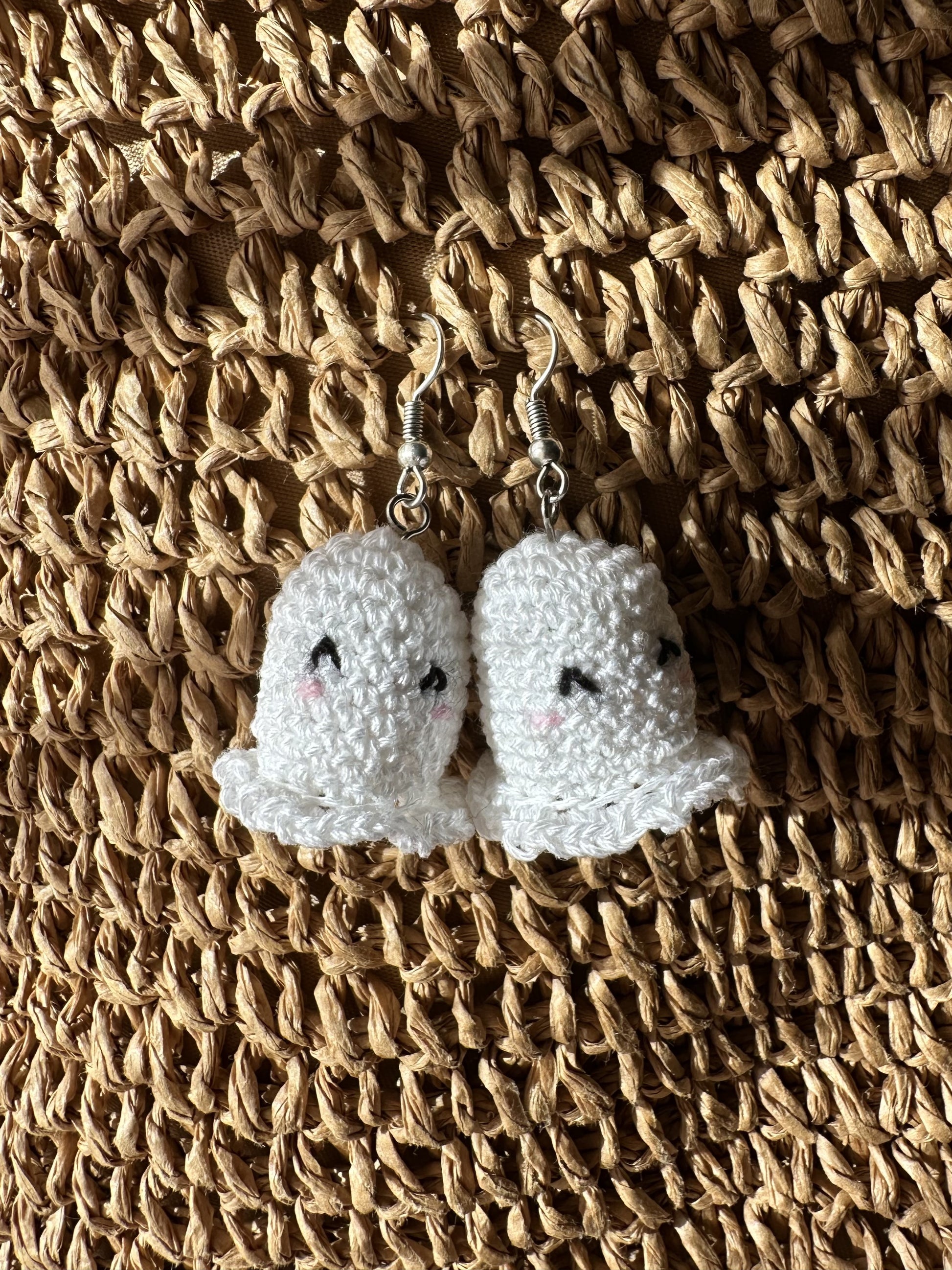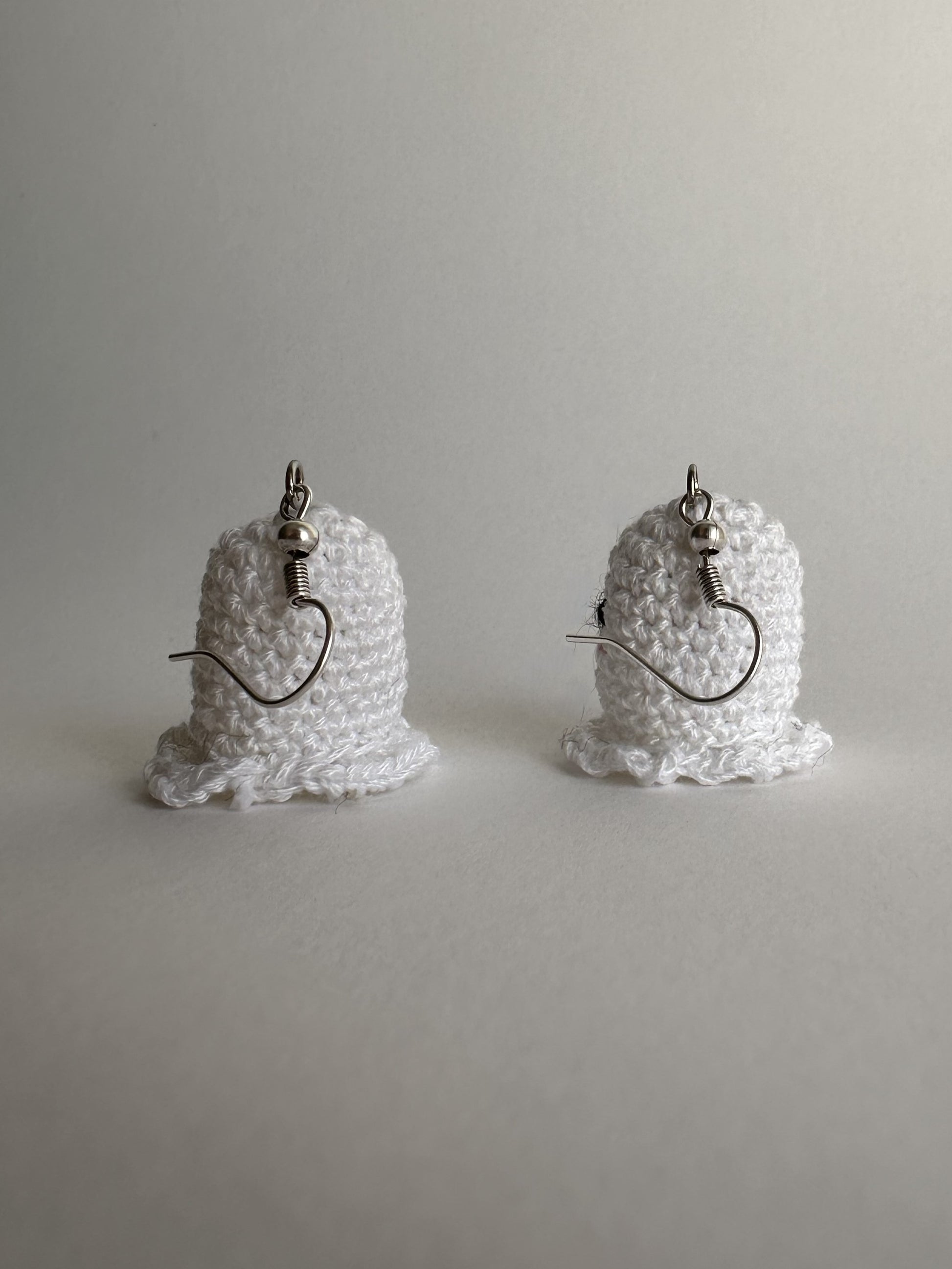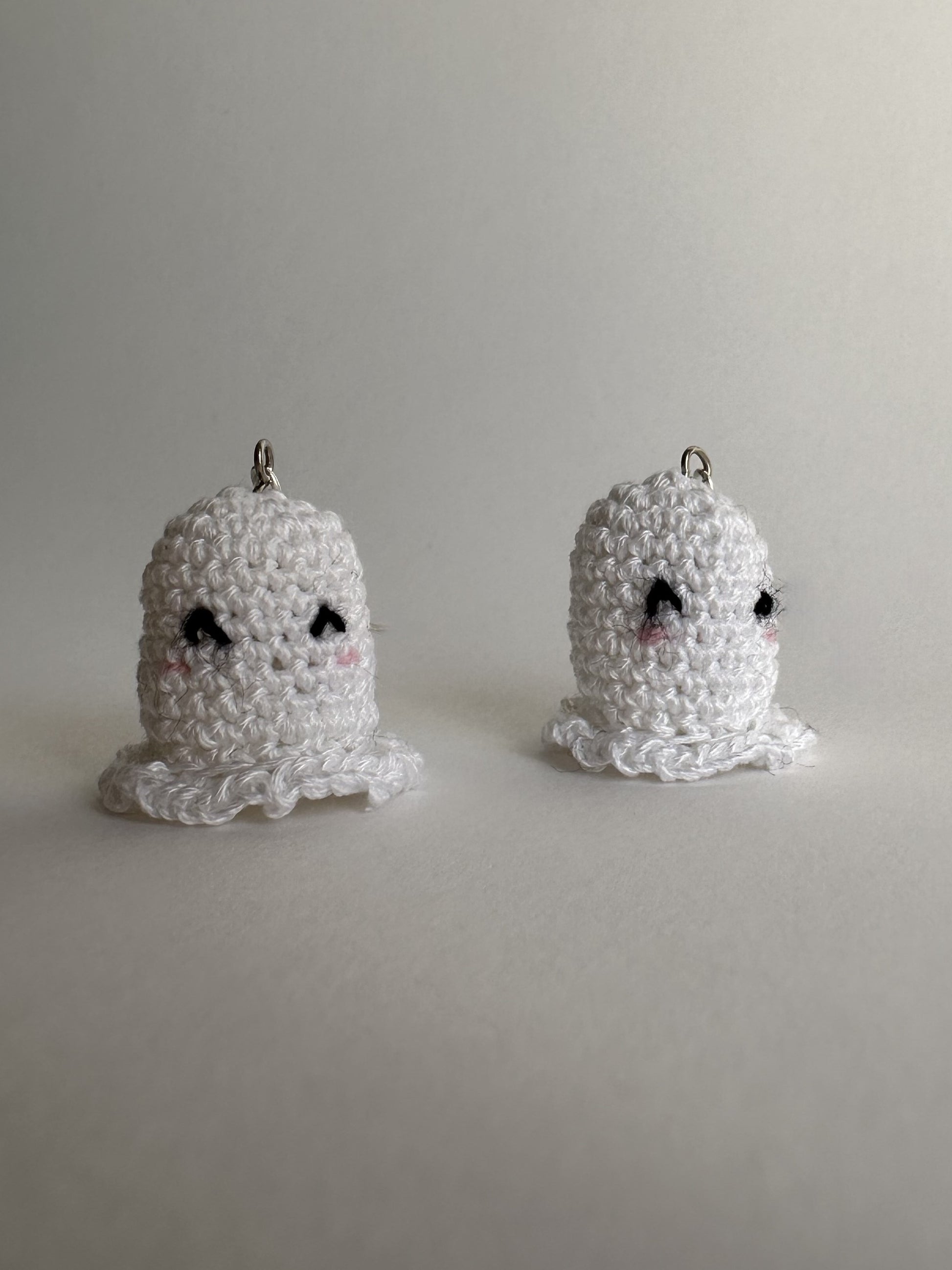Αυτά τα Cuty BOO σκουλαρίκια σε σχήμα φαντάσματος είναι πλεγμένα από μαλακό, λευκό βαμβακερό νήμα με την τεχνική micro amigurumi. Με την γλυκιά τους έκφραση, προσθέτουν μια παιχνιδιάρικη πινελιά σε κάθε εμφάνιση Halloween. Οι γάντζοι από ανοξείδωτο ατσάλι προσφέρουν αντοχή, ενώ ο ελαφρύς σχεδιασμός τα καθιστά άνετα για πολύωρη χρήση. Αυτά τα φαντασματάκια είναι ιδανικά για όσους θέλουν να προσθέσουν μια χαριτωμένη νότα στο στυλ τους κατά τη διάρκεια του Halloween.