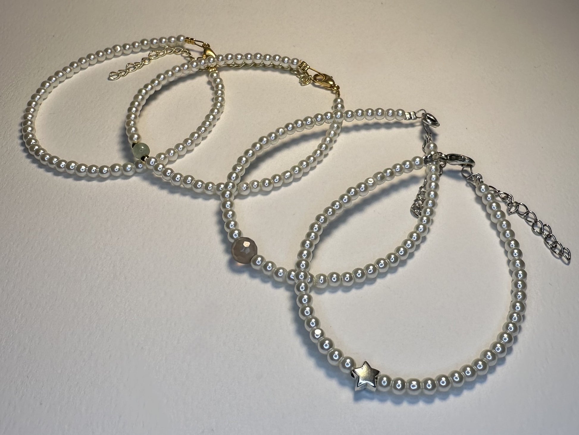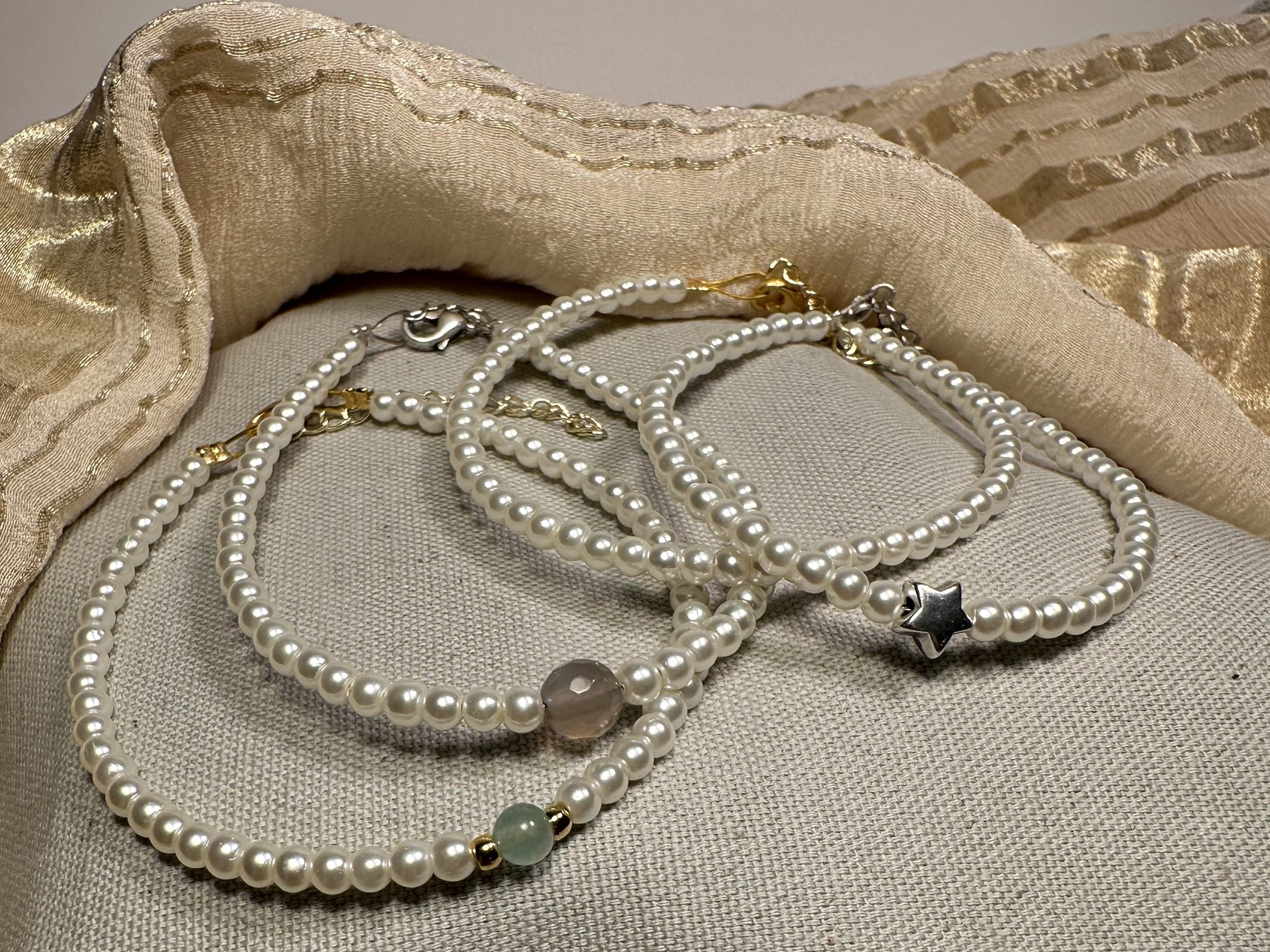 - Υλικά: Αυθεντικά μαργαριτάρια, Αχάτης (γκρι), Αβεντουρίνη (πράσινη), Κράμα Zamak (αστέρι)