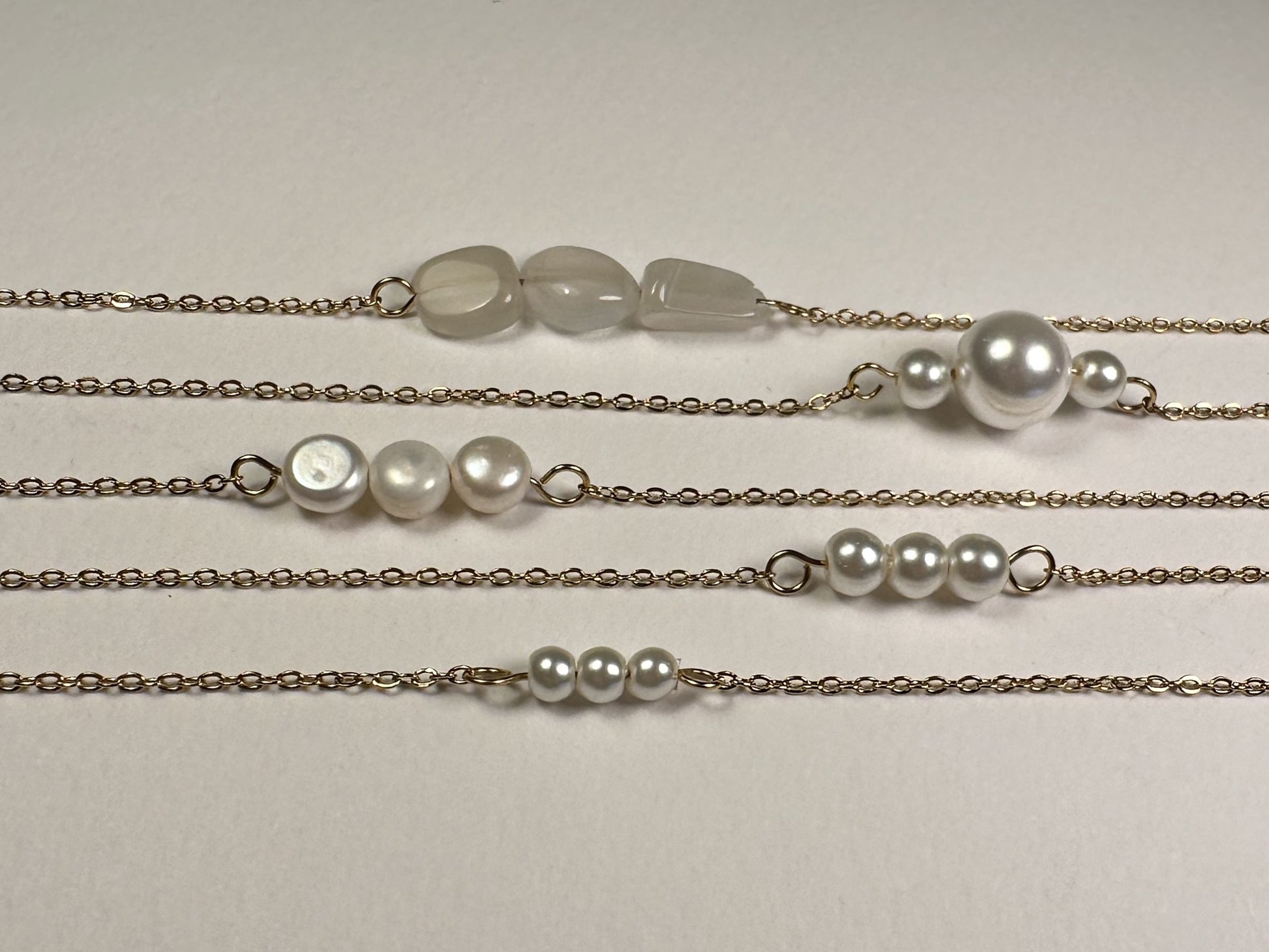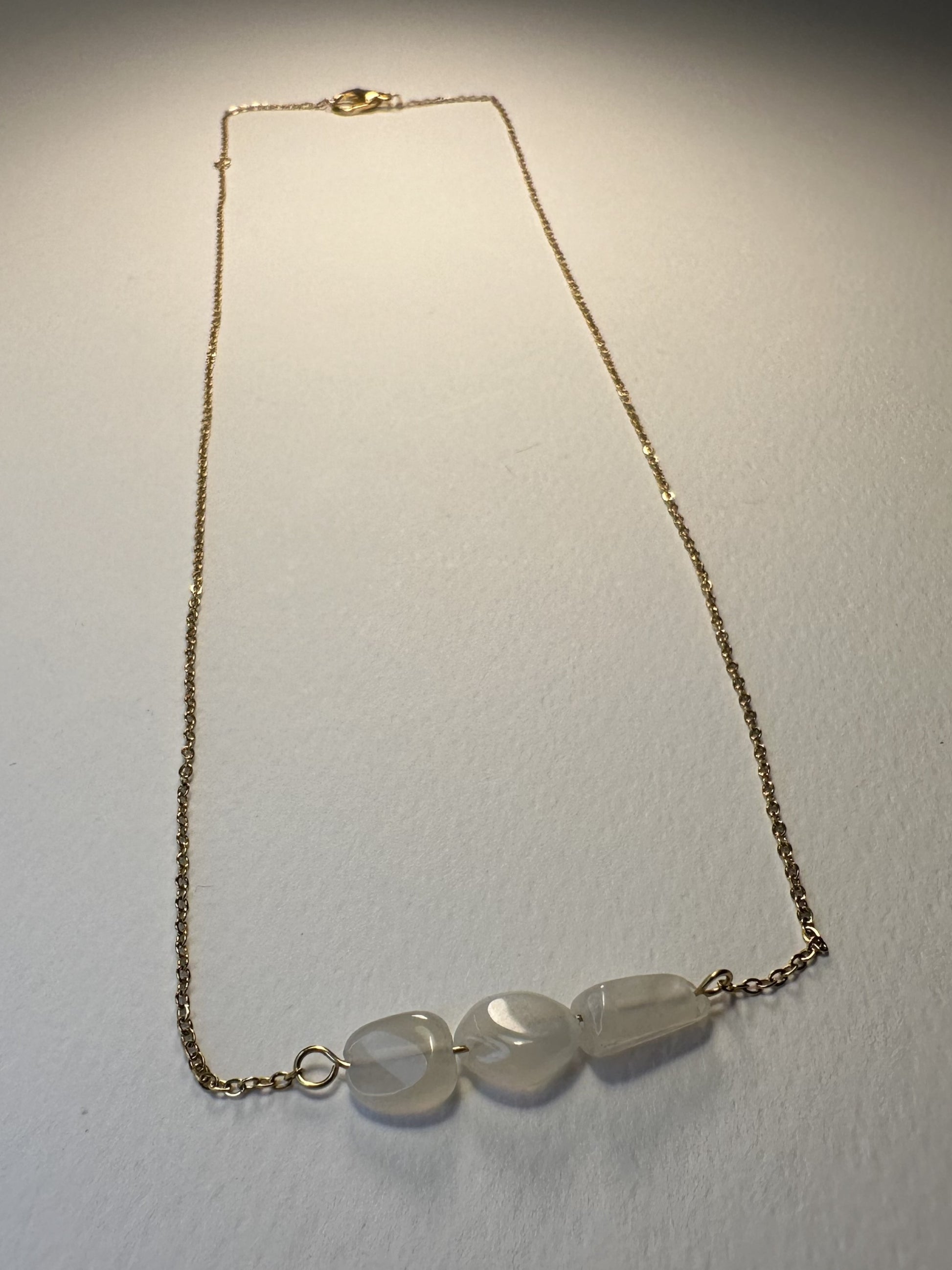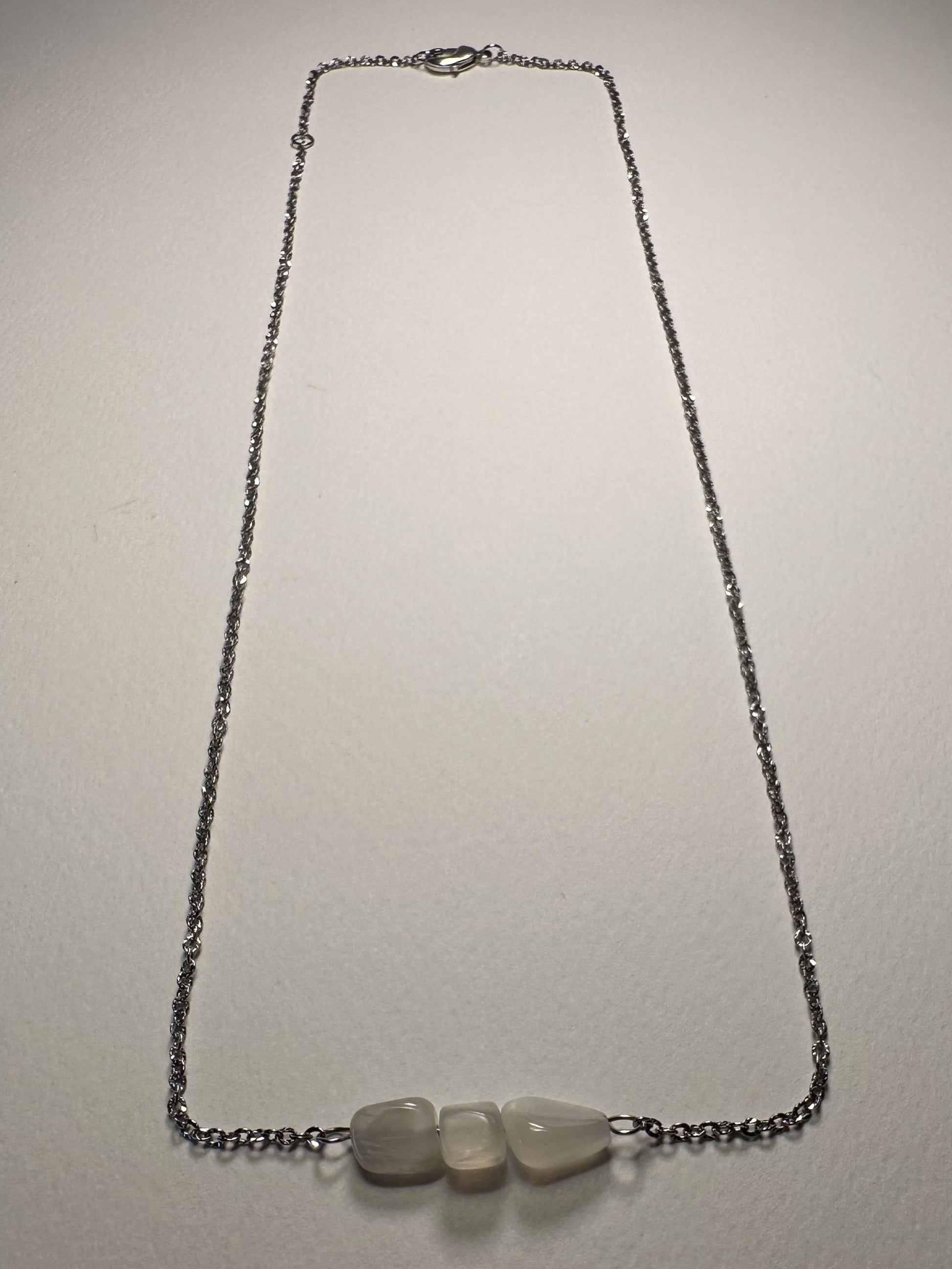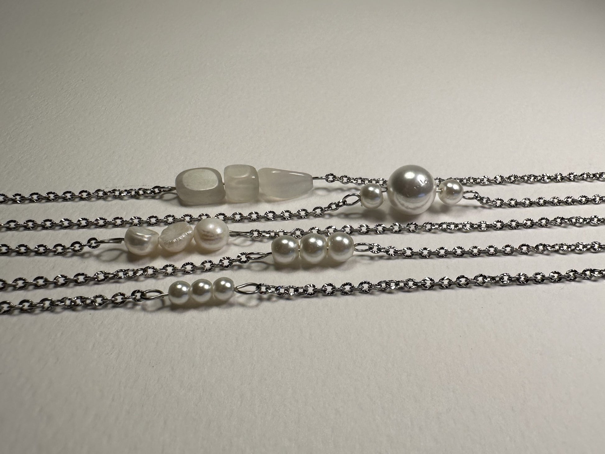 Υλικά: Αληθινά μαργαριτάρια, Φεγγαρόπετρες, Αλυσίδα από ανοξείδωτο ατσάλι (χρυσή ή ασημί) Κούμπωμα: Διατίθεται σε χρυσό ή ασημί φινίρισμα για ένα κομψό και διαχρονικό κλείσιμο Στυλ: Εκλεπτυσμένο, ευέλικτο και διαχρονικό