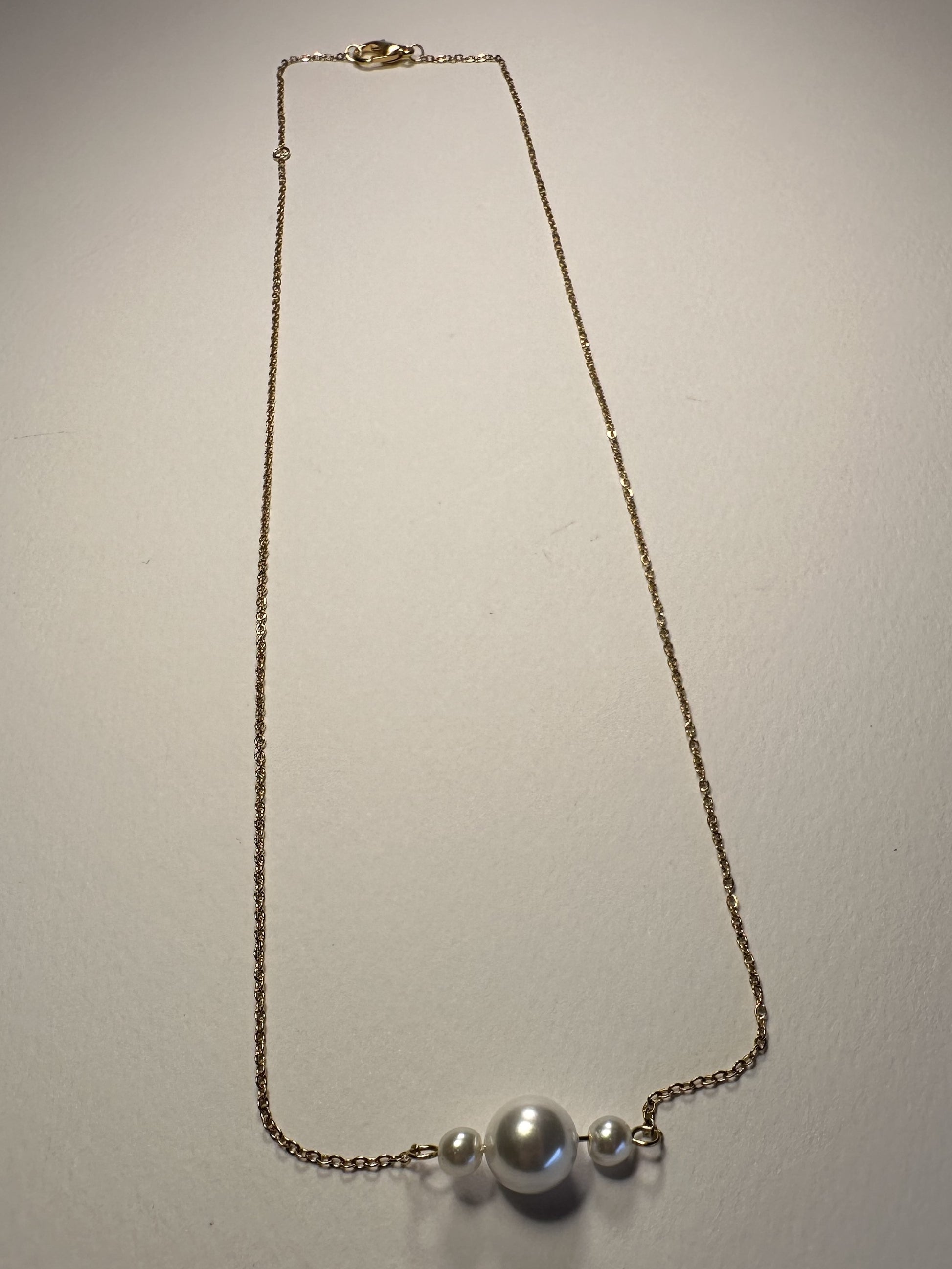 Κλασικό Σετ Μαργαριταριών: Μια διαχρονική σύνθεση ενός μεγάλου μαργαριταριού πλαισιωμένου από δύο μικρότερα, που ακτινοβολεί ισορροπία και κομψότητα.