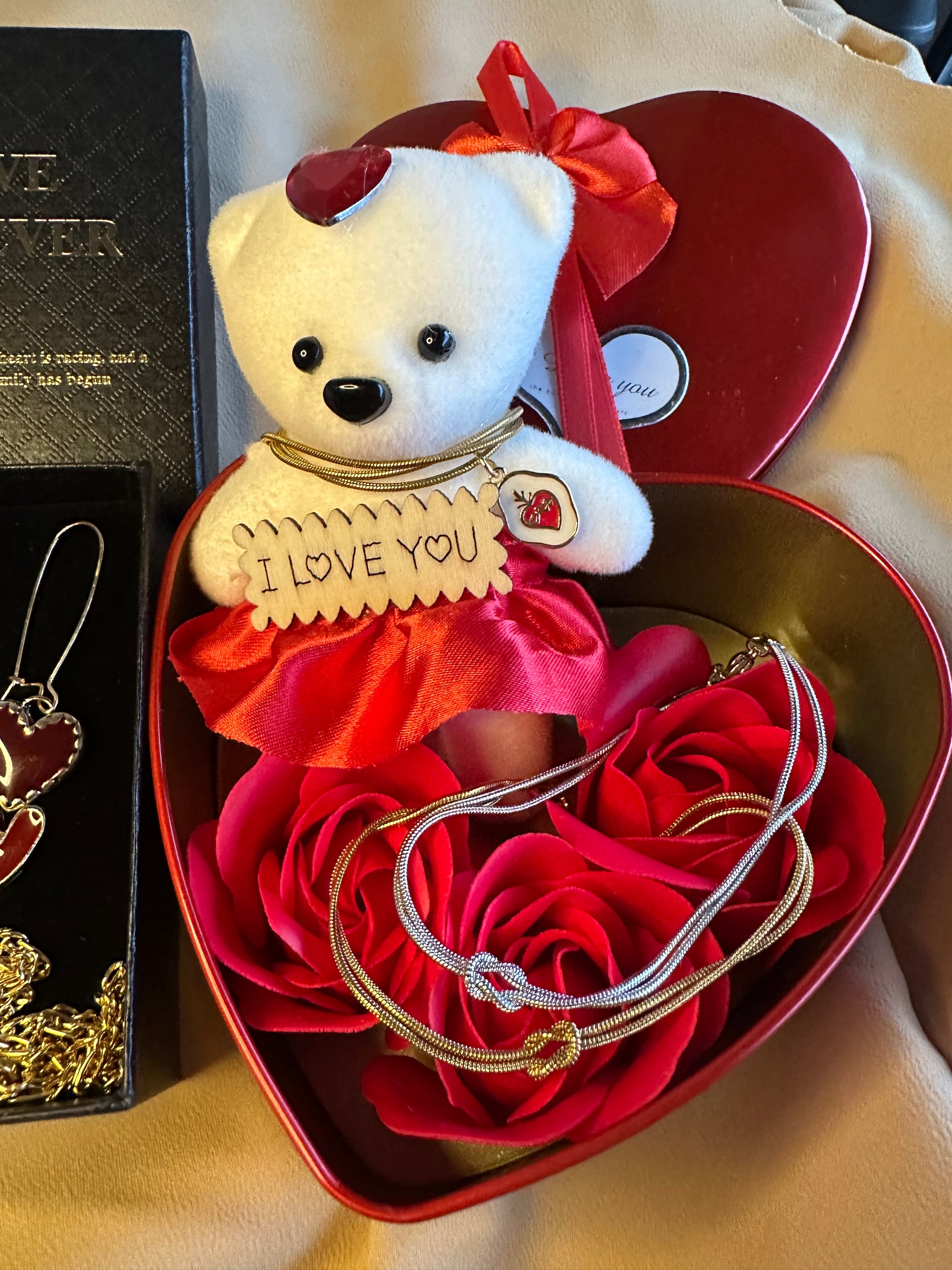 Ένα σύμβολο αγάπης και τρυφερότητας, αυτό το μαγευτικό, σε σχήμα καρδιάς, μεταλλικό κόκκινο κουτί κρύβει μια υπέροχη έκπληξη. Στο εσωτερικό του, ένα χαριτωμένο μικρό πολικό αρκουδάκι, κάθεται ανάμεσα σε πανέμορφα κόκκινα τριαντάφυλλα, δημιουργώντας μια ατμόσφαιρα ζεστασιάς και ρομαντισμού. Σχεδιασμένο για να φιλοξενεί ένα πολύτιμο κόσμημα, αυτό το εκλεπτυσμένο κουτί μετατρέπει κάθε δώρο σε μια αξέχαστη ανάμνηση—ιδανικό για να γιορτάσετε την αγάπη, το πάθος και τις ξεχωριστές στιγμές.