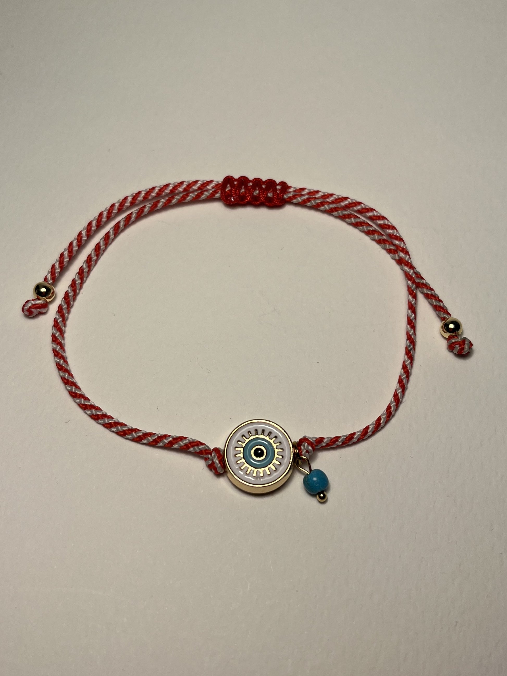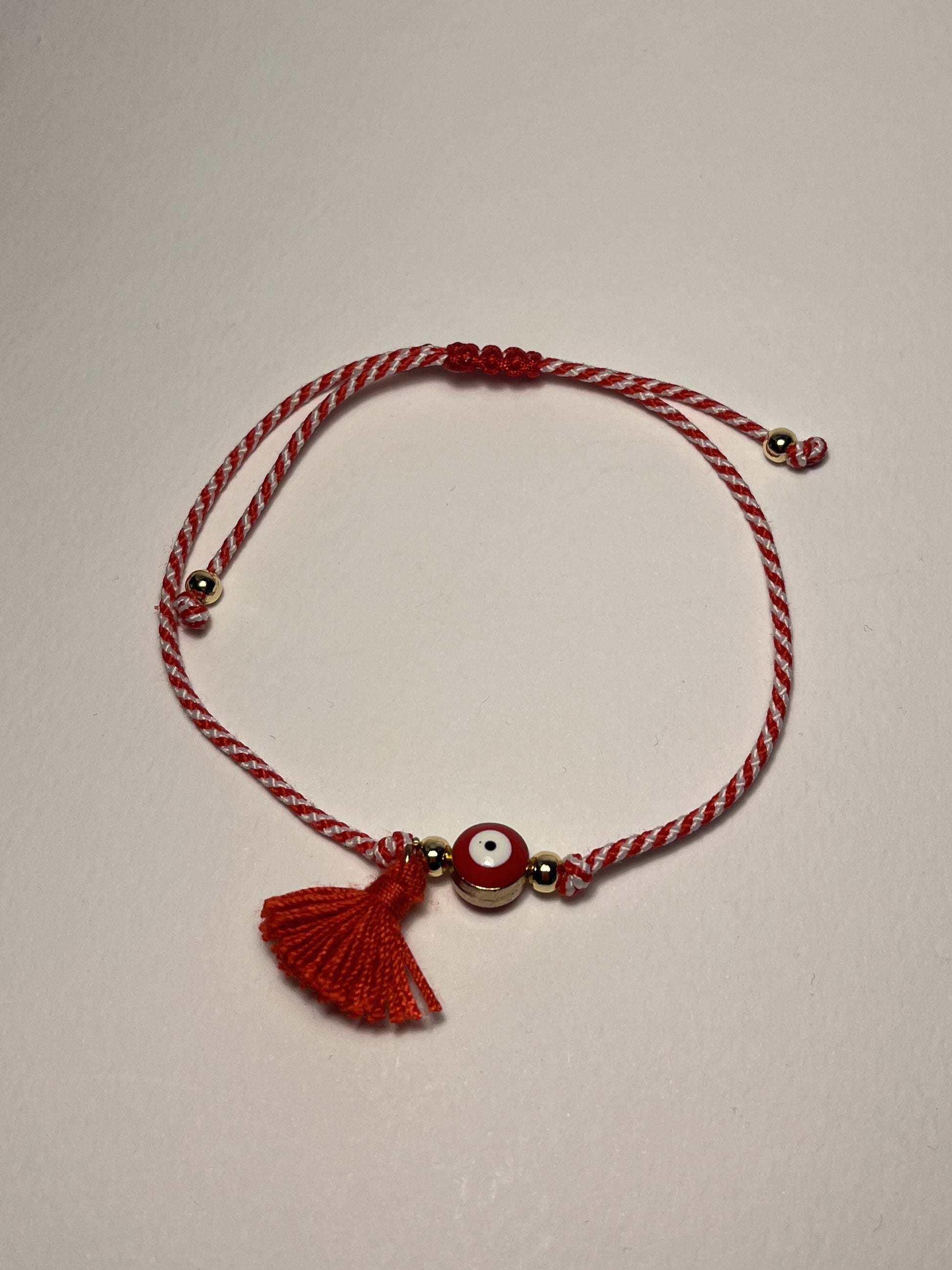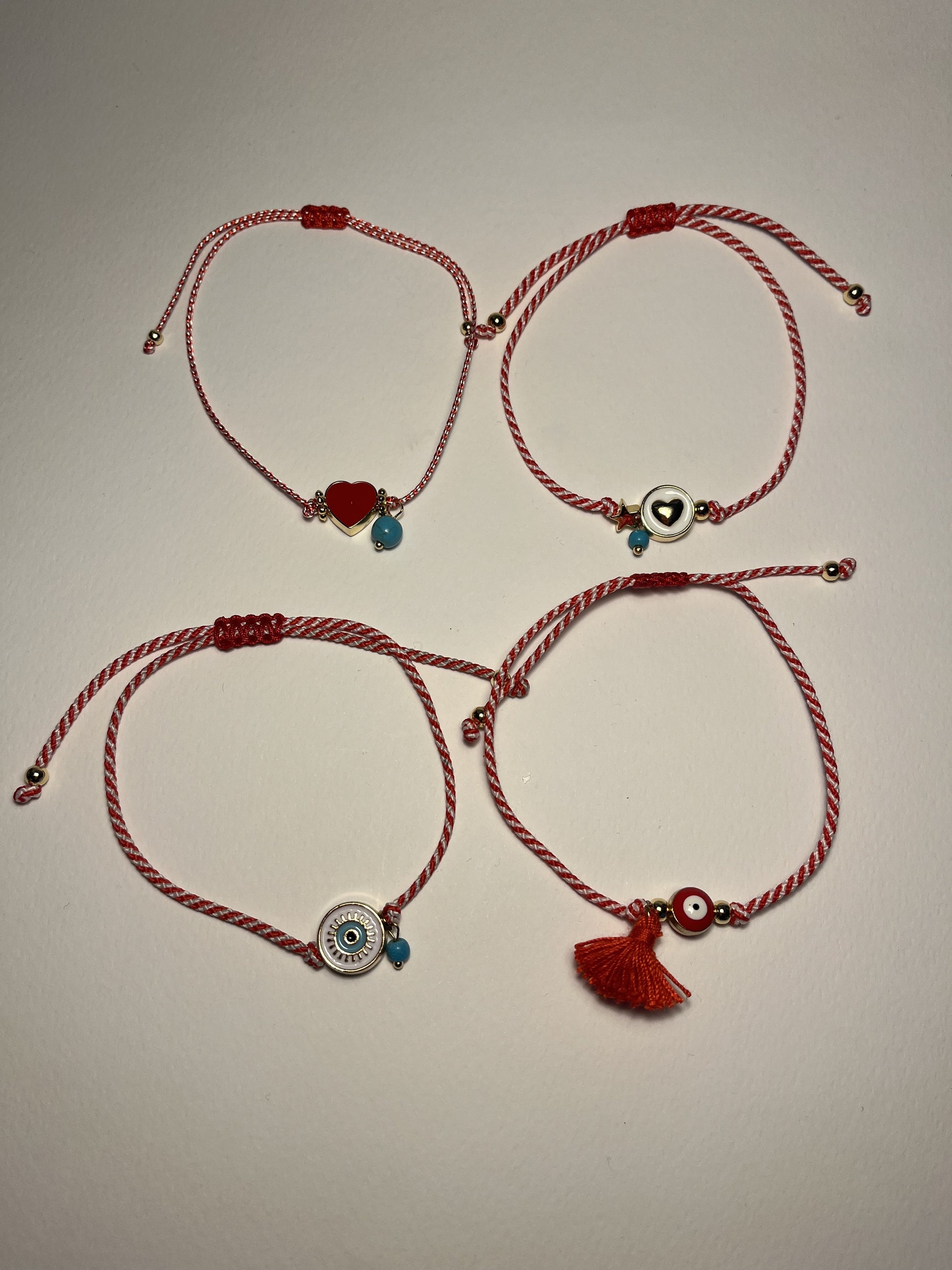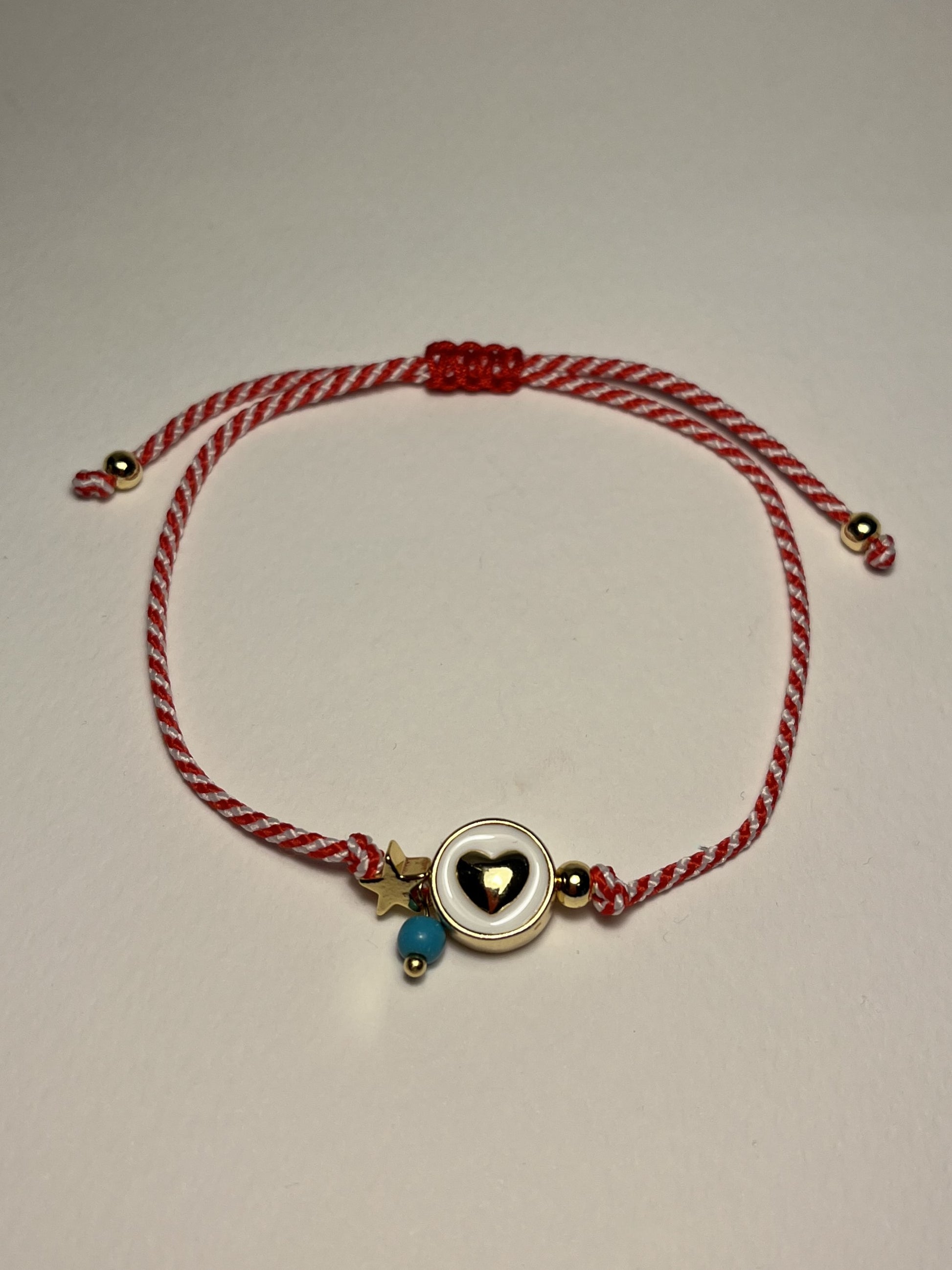 - Σχέδιο: Παραδοσιακό Μαρτάκι με συμβολικά γούρια, όπως το μάτι, η καρδιά και φουντίτσα για καλή τύχη και προστασία.