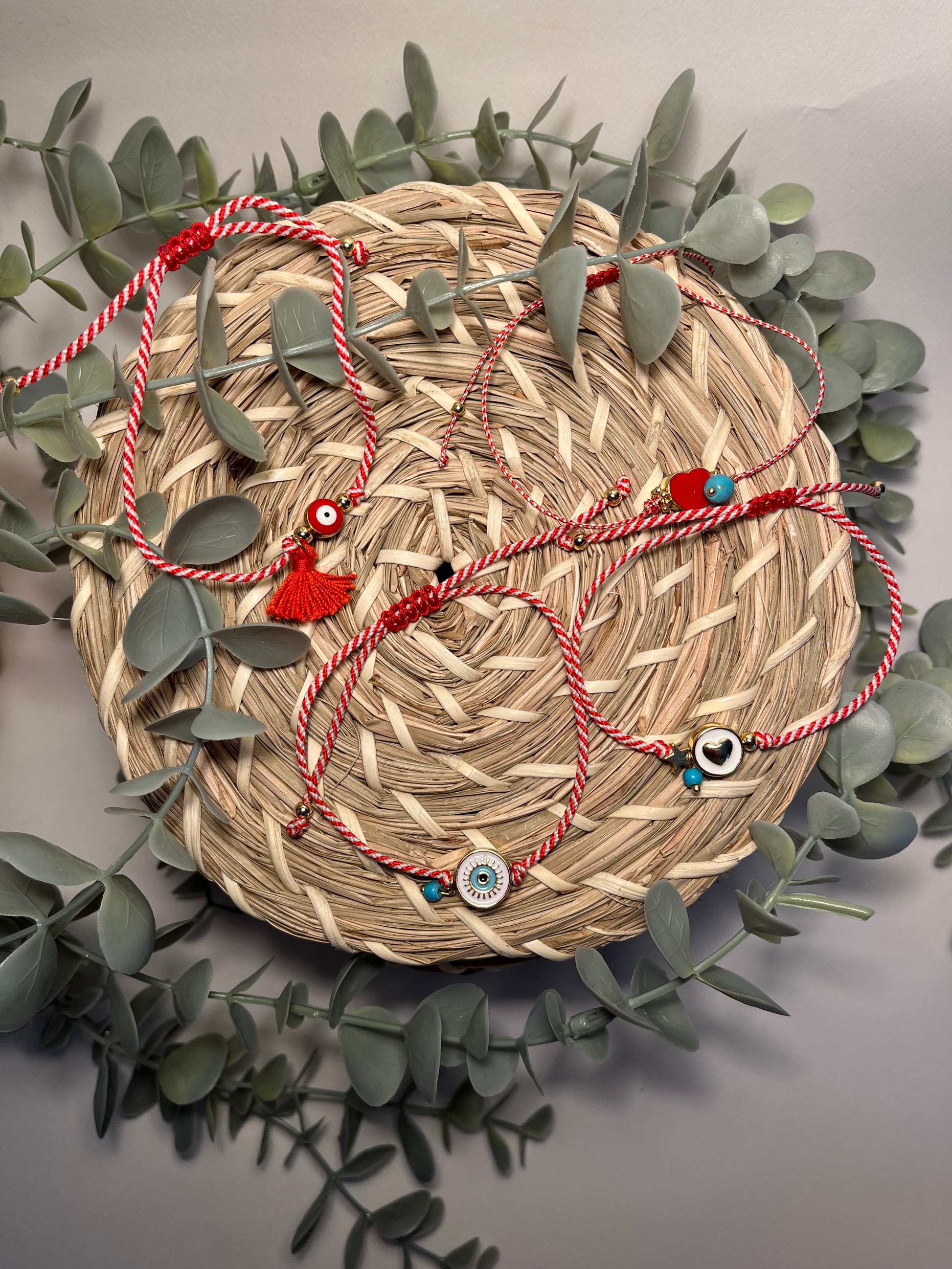 Αυτά τα Μαρτάκια διαθέτουν στριφτές κόκκινες και λευκές κλωστές από βαμβάκι, που συμβολίζουν την προστασία από τον ήλιο και την υποδοχή της άνοιξης. Κάθε βραχιόλι είναι διακοσμημένο με μοναδικά γούρια, προσδίδοντας έναν ιδιαίτερο συμβολισμό σε αυτή την αγαπημένη ελληνική παράδοση. Είναι ιδανικά για δώρο ή για να φορεθούν καθ’ όλη τη διάρκεια του Μαρτίου.