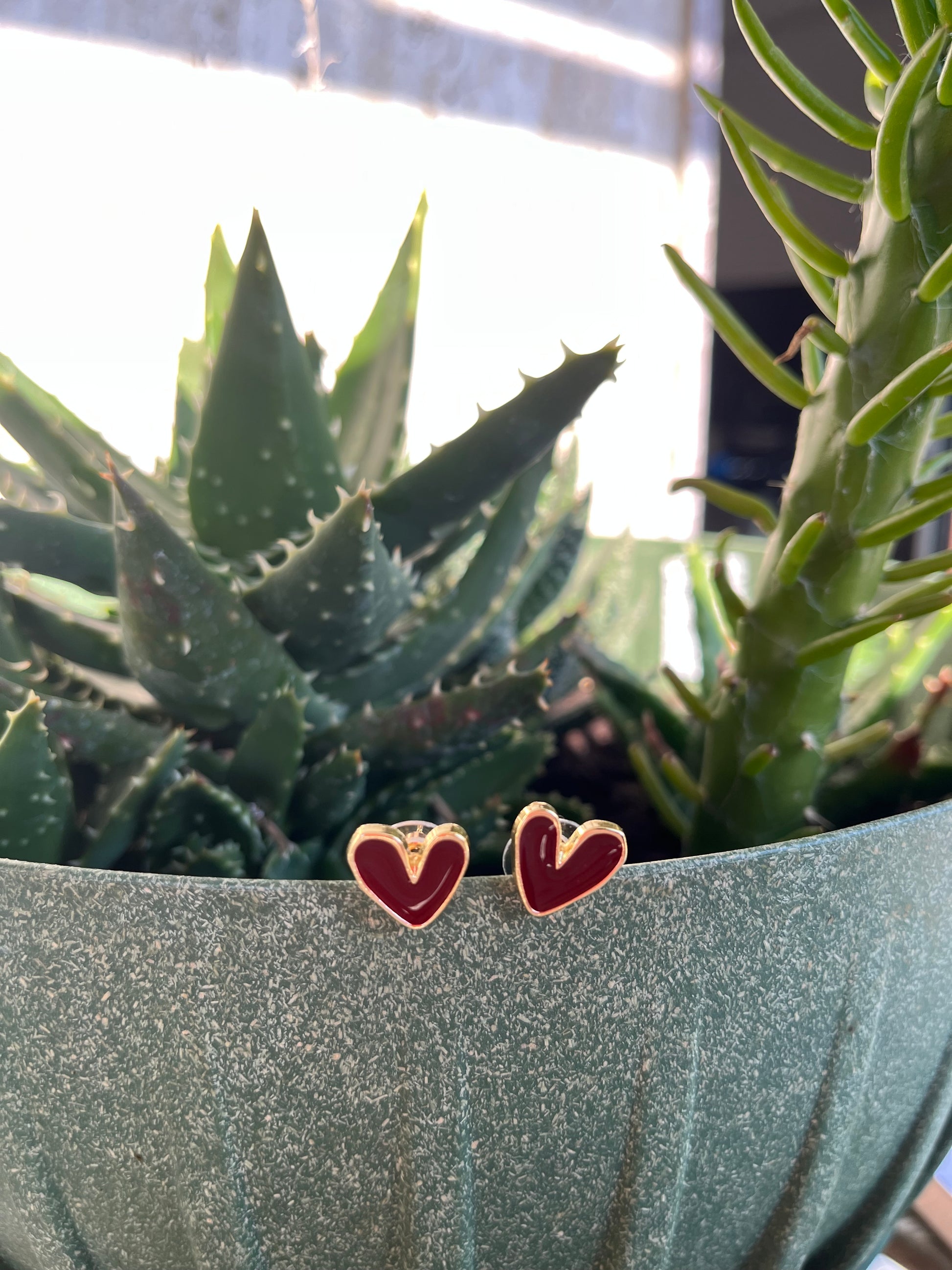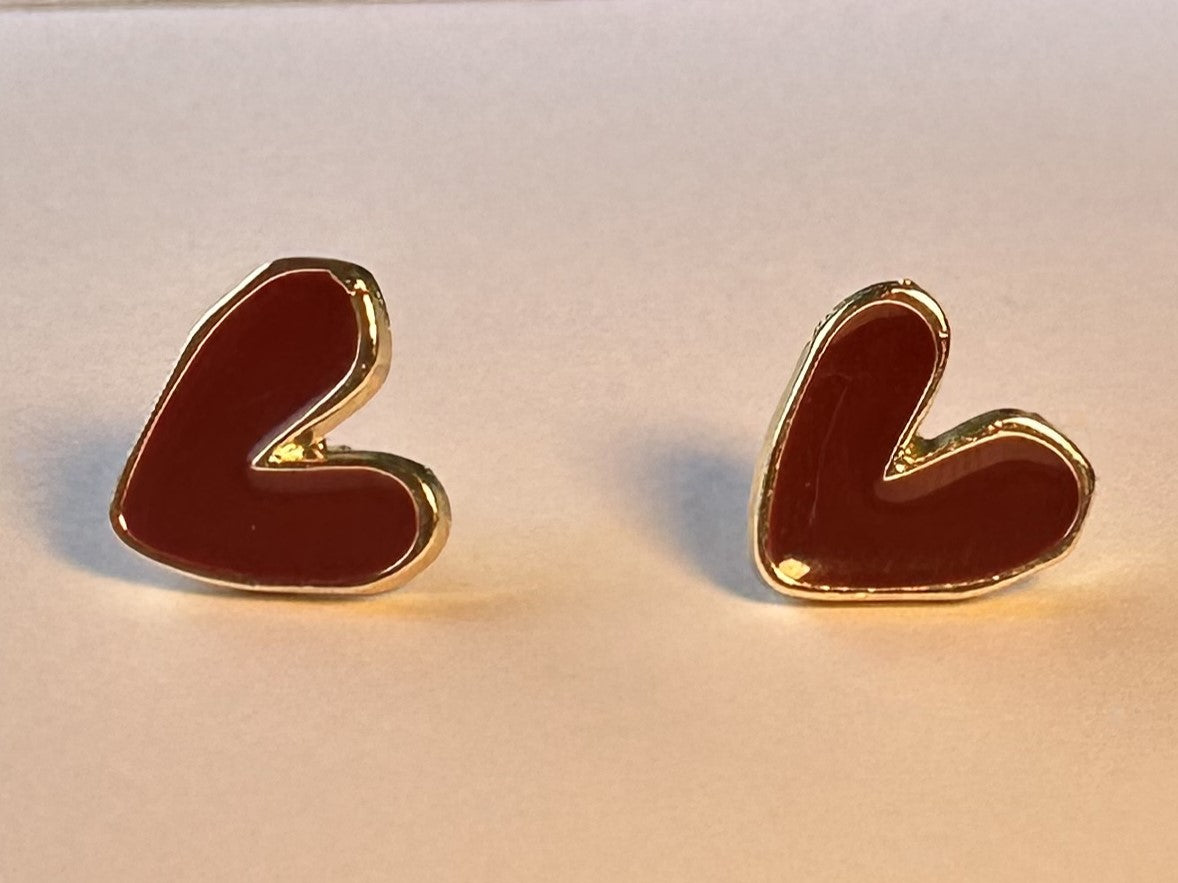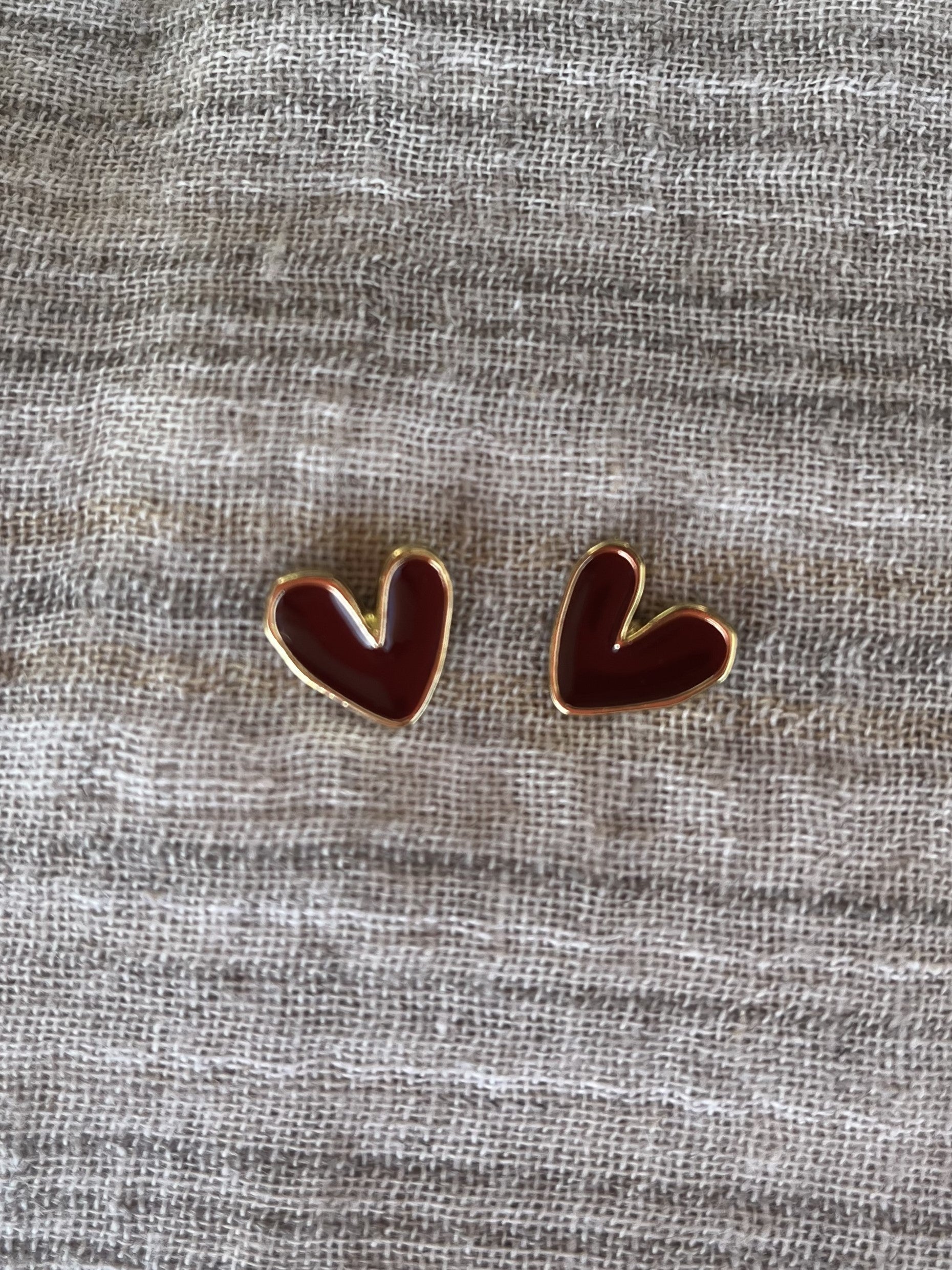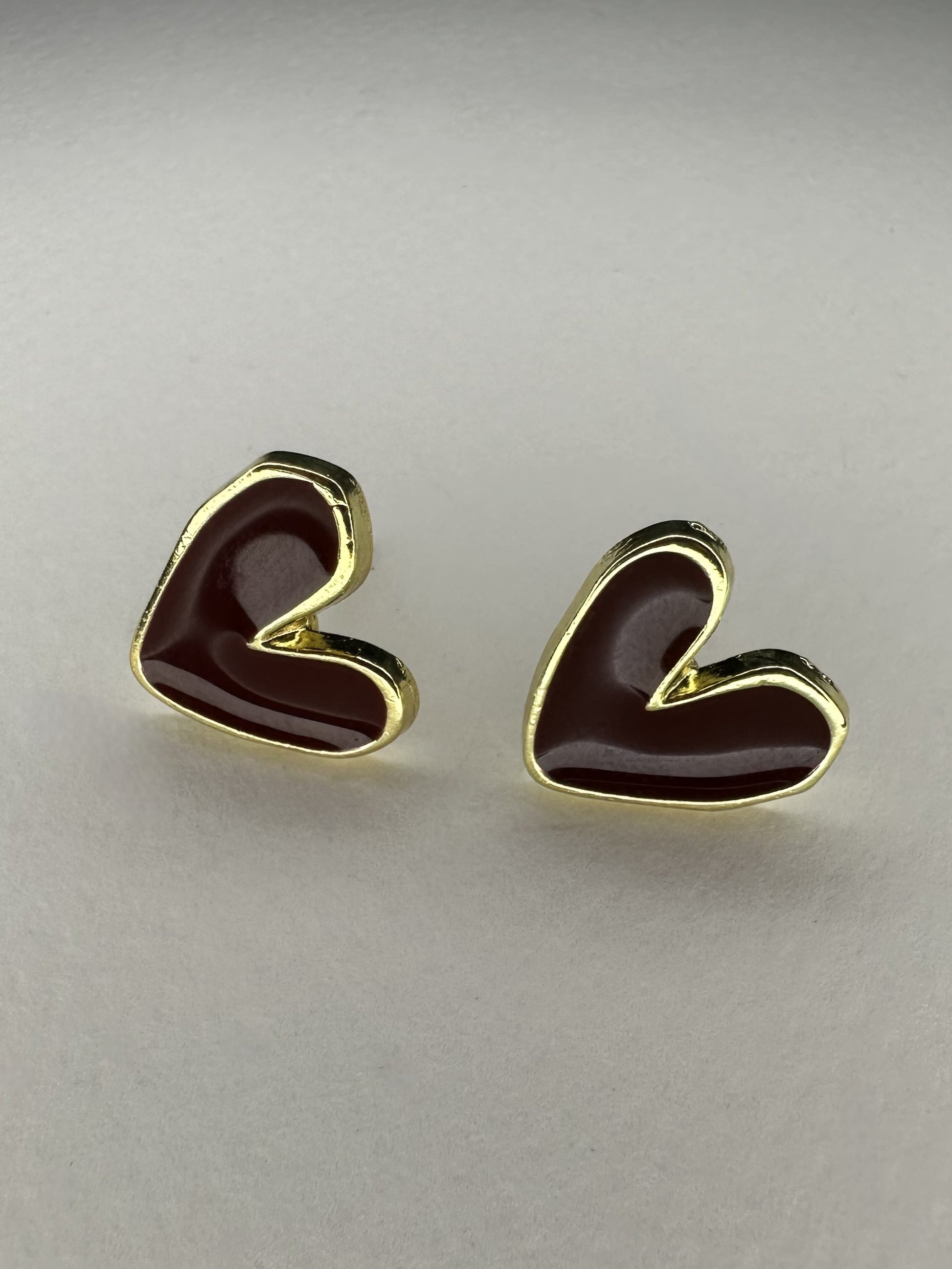 Αυτά τα κομψά σκουλαρίκια εμφανίζουν έναν μοντέρνο σχεδιασμό με δύο χρυσές καρδιές, που όμορφα αντιπαραβάλλονται με πλούσιο σκούρο κόκκινο τόνο. Το κομψό σχήμα και ο εκλεπτυσμένος σχεδιασμός τους κάνουν ιδανικό αξεσουάρ τόσο για καθημερινά όσο και για επίσημα ντυσίματα.