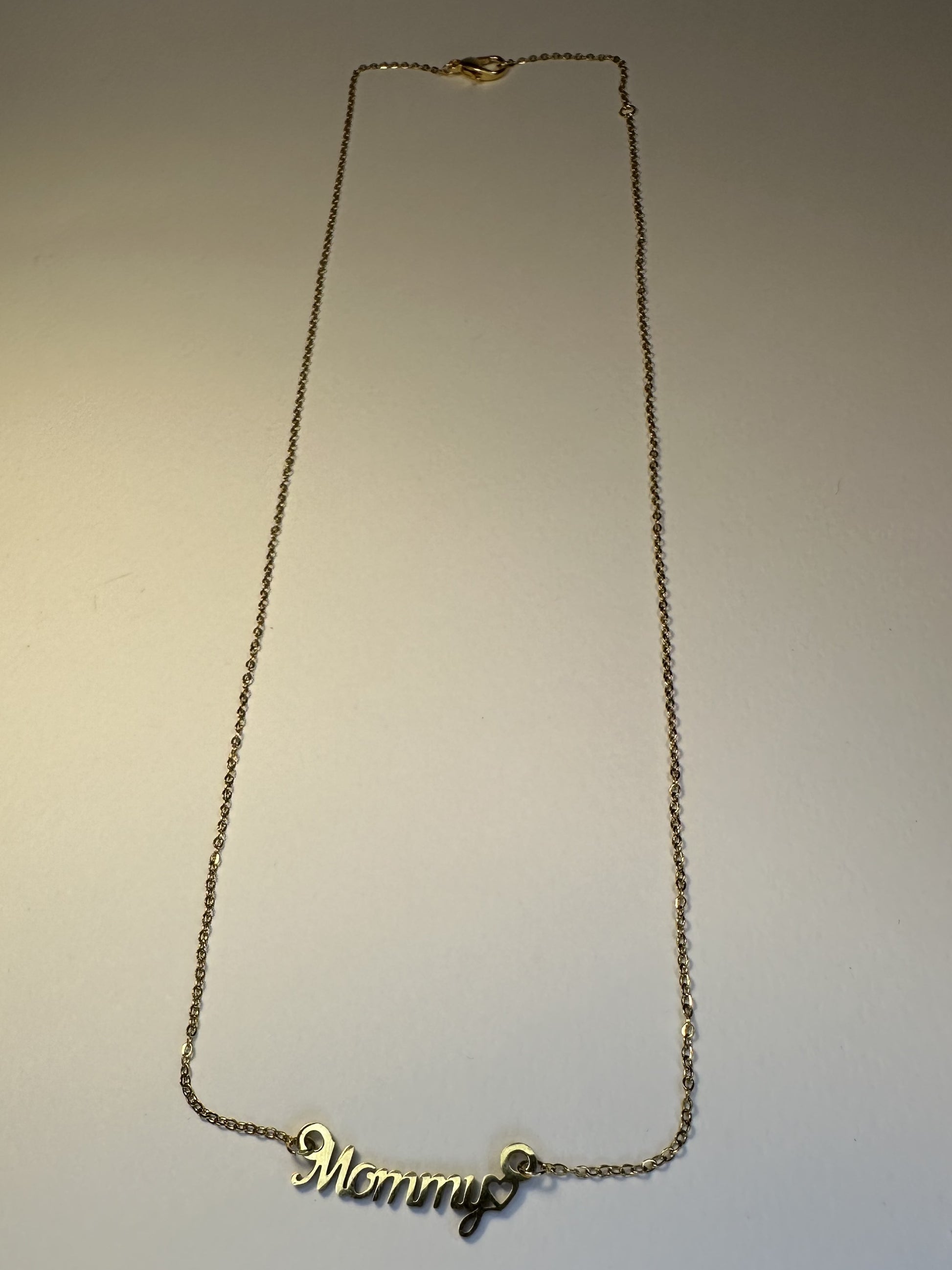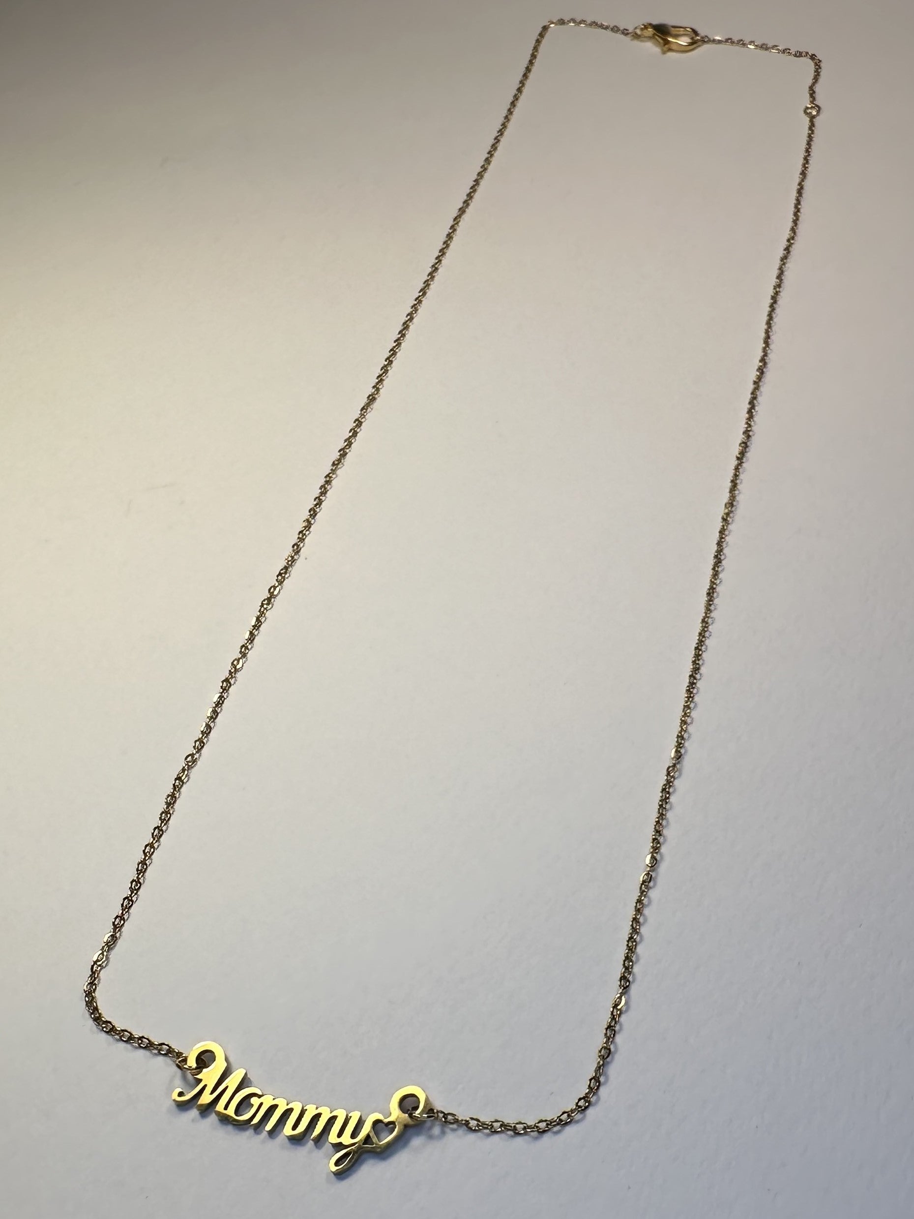 Μενταγιόν: Το κολιέ είναι διακοσμημένο με τη λέξη "Mommy" σε κομψή γραμματοσειρά, λειτουργώντας ως μια συγκινητική υπενθύμιση της αγάπης και της οικογένειας.