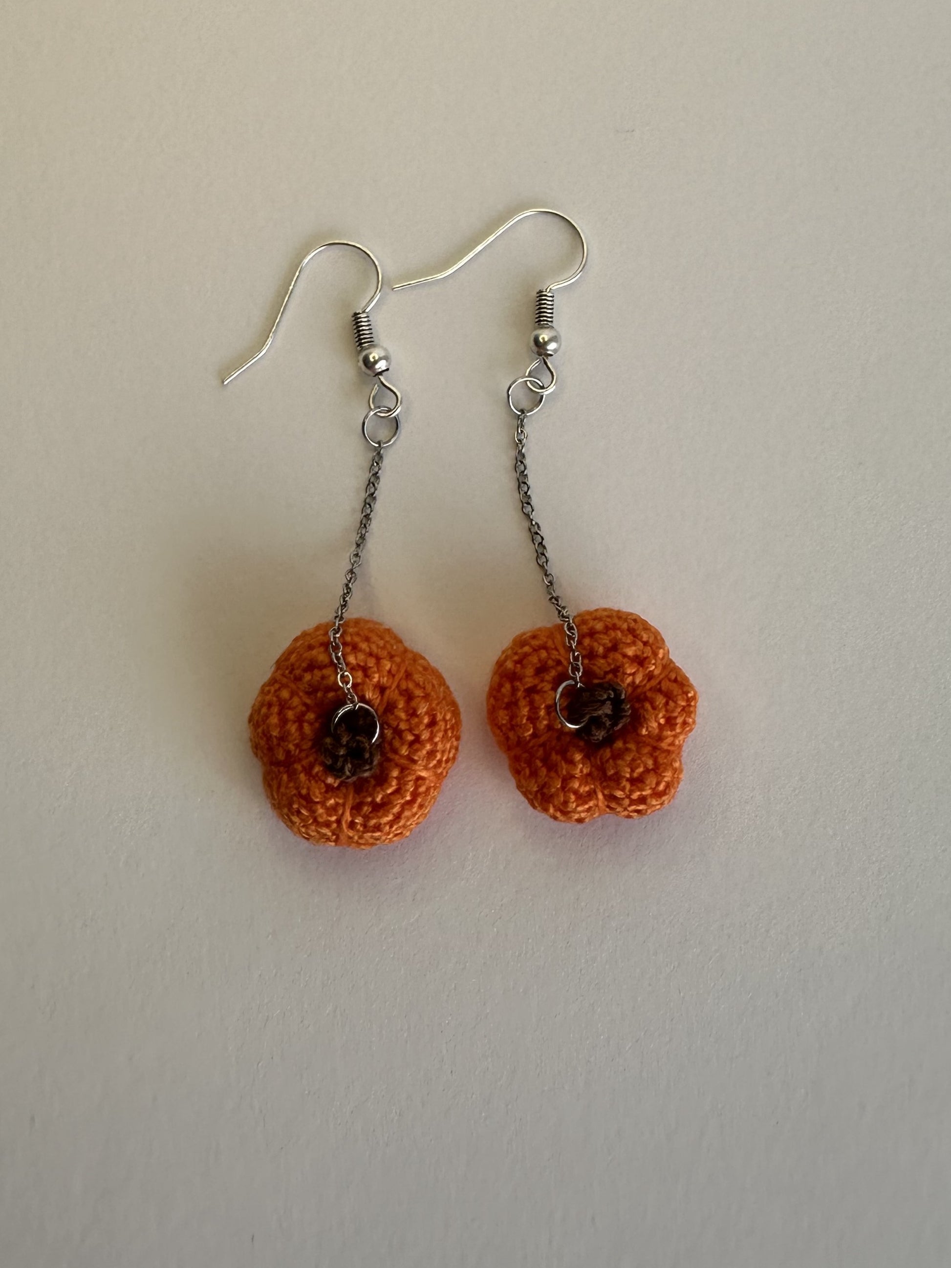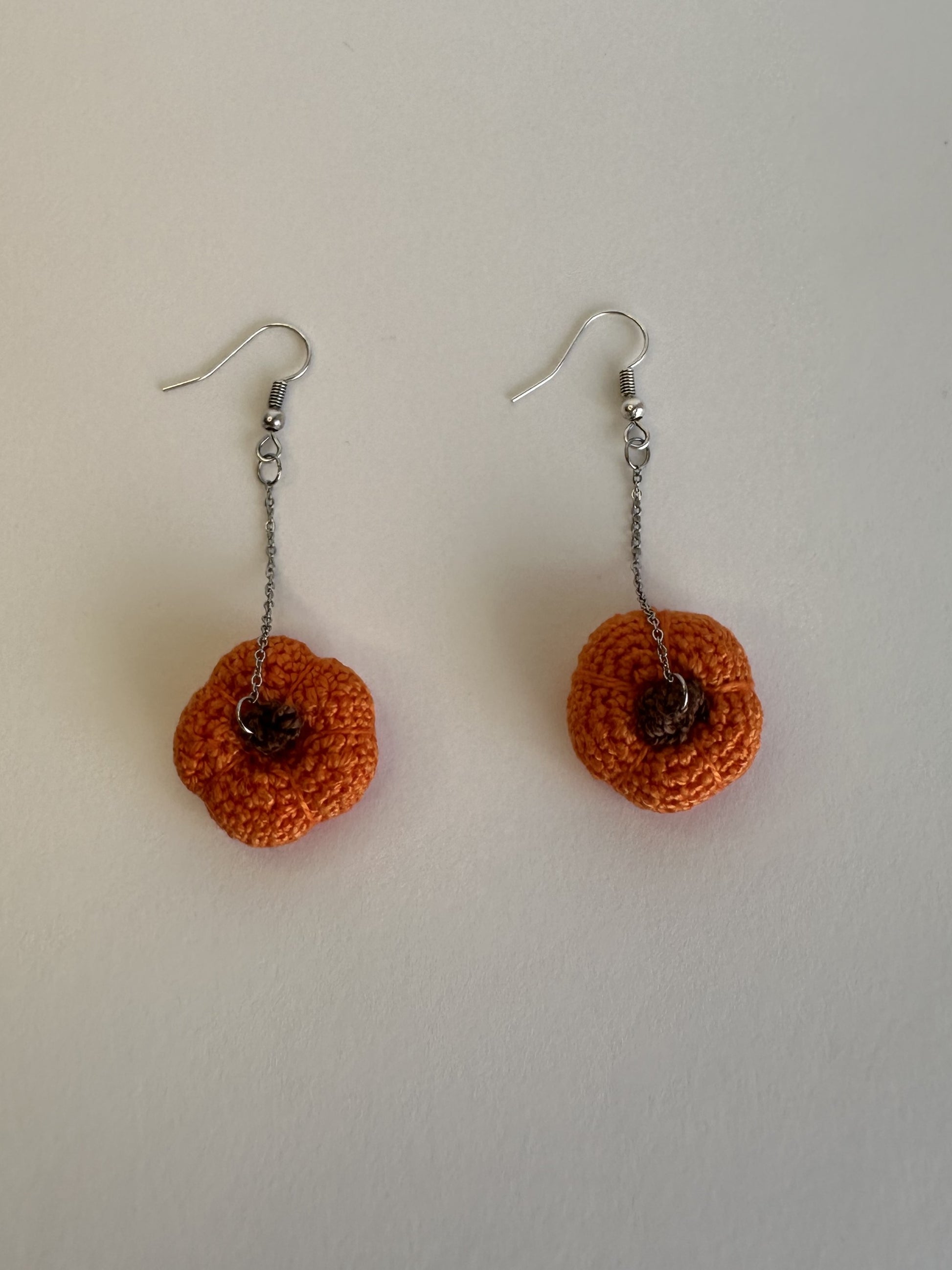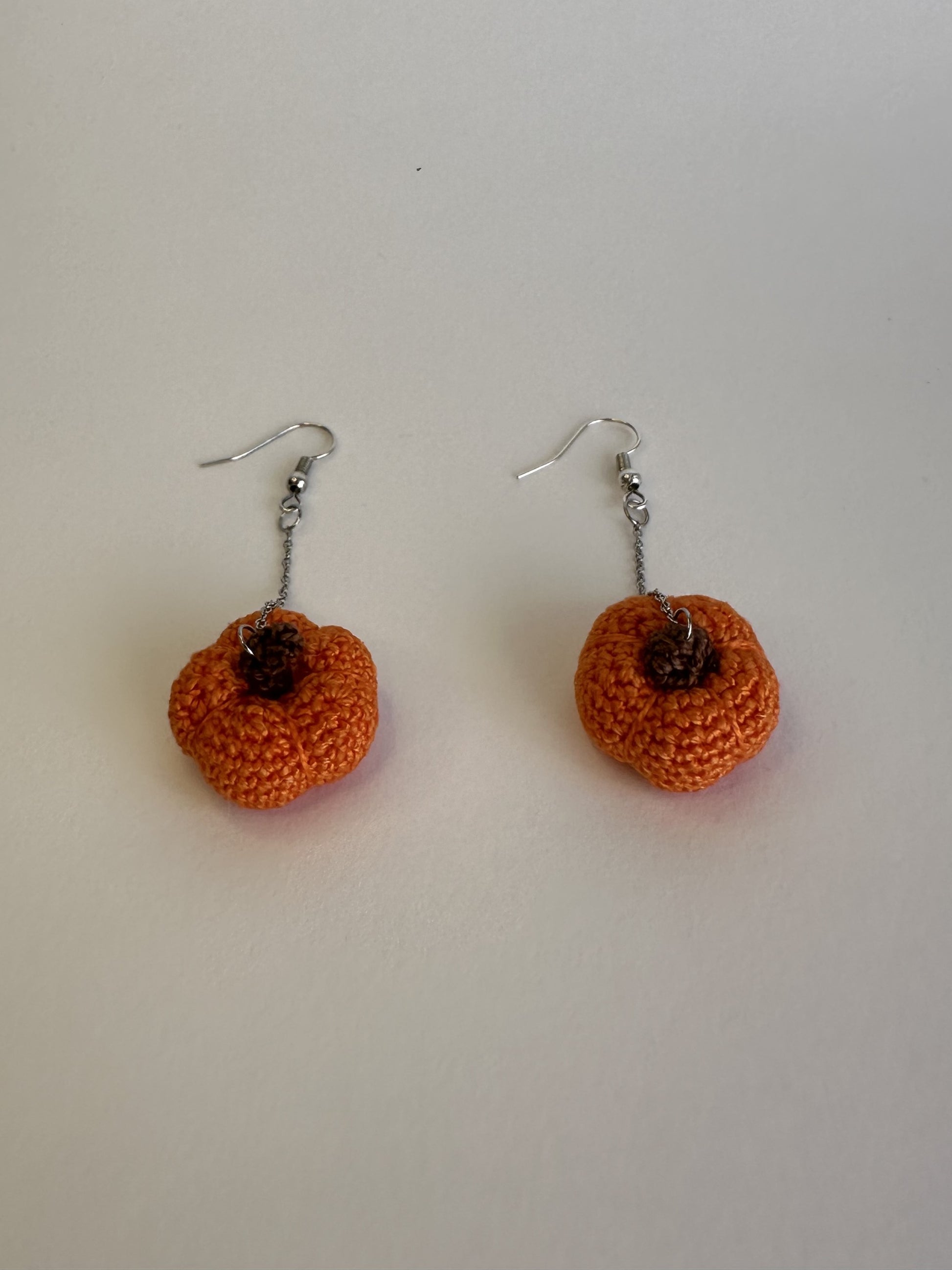 Αυτά τα πανέμορφα Pumpkin σκουλαρίκια σε σχήμα κολοκύθας διατίθενται σε δύο μεγέθη — μικρές και μεγάλες —, πλεγμένα με την τεχνική micro amigurumi από βαμβακερό νήμα υψηλής ποιότητας. Οι μικρές κολοκύθες προσφέρουν μια διακριτική αλλά γιορτινή εμφάνιση, ενώ οι μεγαλύτερες προσφέρουν ένα πιο εντυπωσιακό αξεσουάρ. Και τα δύο μεγέθη είναι συνδεδεμένα με αλυσίδα από ανοξείδωτο ατσάλι, κάνοντάς τα ιδανικά για φθινοπωρινές και Halloween εμφανίσεις. Η λεπτομερής χειροτεχνία τα καθιστά μοναδικά και προσθέτουν μια γλυκιά εποχιακή πινελιά στο στυλ σας.