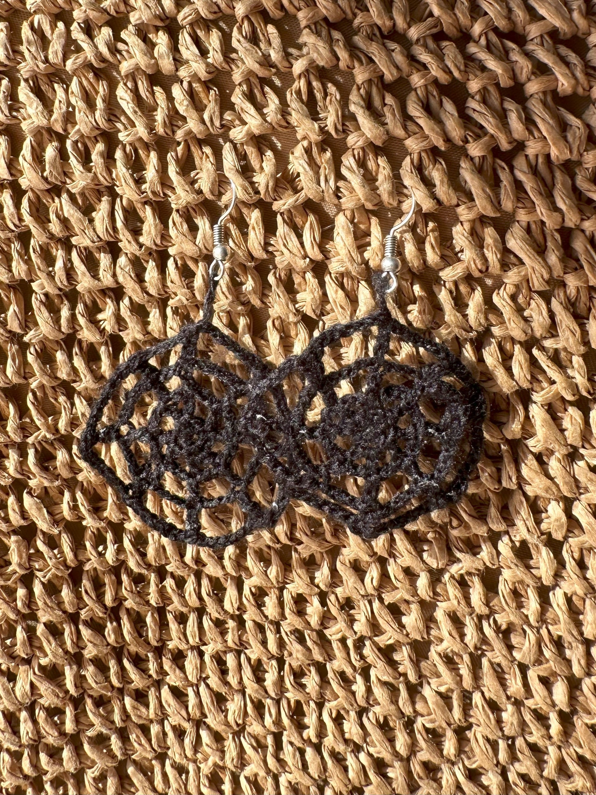 Τα Spider Web σκουλαρίκια σε σχήμα ιστού αράχνης είναι χειροποίητα με μαύρο βαμβακερό νήμα, χρησιμοποιώντας την τεχνική micro amigurumi. Ο περίπλοκος σχεδιασμός του ιστού αποπνέει το πνεύμα του Halloween, διατηρώντας παράλληλα μια κομψή και ελαφριά εμφάνιση. Κρεμασμένα από γάντζους από ανοξείδωτο ατσάλι, αυτά τα σκουλαρίκια είναι ιδανικά για να προσθέσουν μια πινελιά τρόμου σε κάθε εμφάνιση, χωρίς να είναι βαριά. Τέλεια για πάρτι Halloween ή ως εντυπωσιακό εποχιακό αξεσουάρ.