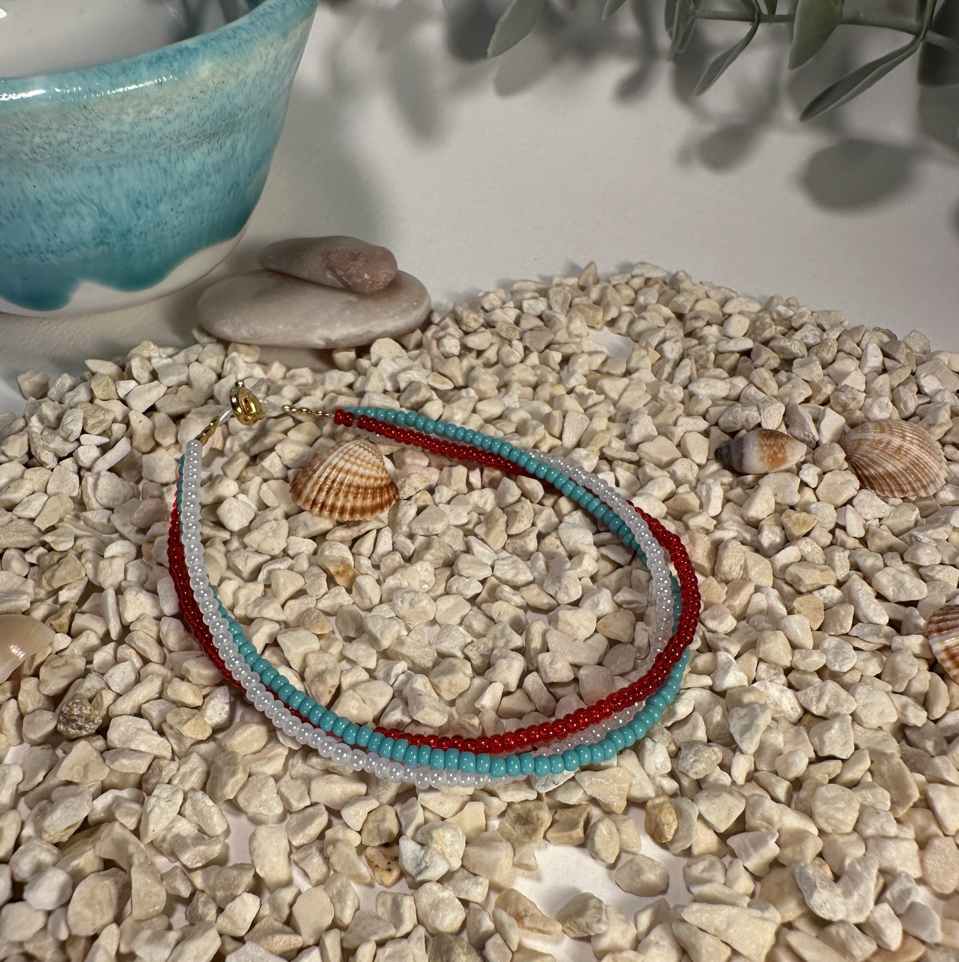 Ανανεώστε την καθημερινή σας εμφάνιση με το βραχιόλι "Tricolore"! Με τρεις υπέροχες σειρές από χάντρες σε κόκκινο, τιρκουάζ και λευκό, αυτό το χειροποίητο κόσμημα είναι ιδανικό για να προσθέσετε μια φρέσκια και ζωντανή πινελιά σε κάθε σύνολο. Ελαφρύ και ευέλικτο, το βραχιόλι "Tricolore" είναι σχεδιασμένο για να φοριέται όλη μέρα. Αγκαλιάστε ένα αναζωογονητικό στυλ με το βραχιόλι "Tricolore", το απαραίτητο αξεσουάρ σας για μια πινελιά χρώματος και ανεπιτήδευτης γοητείας κάθε μέρα.
